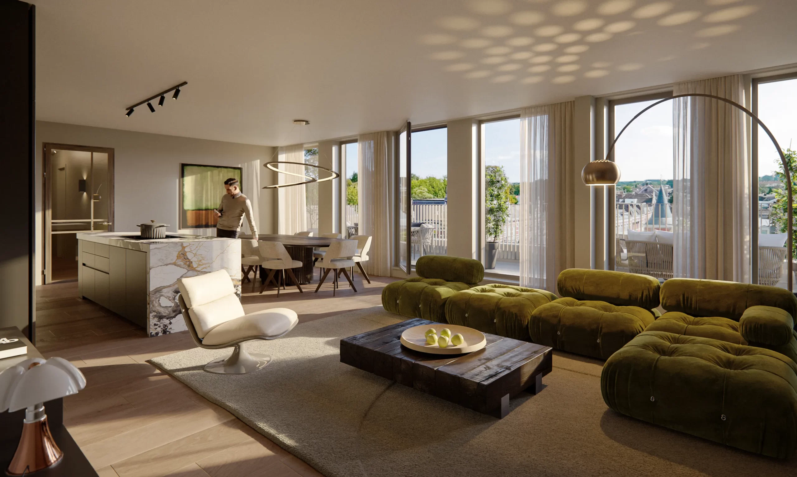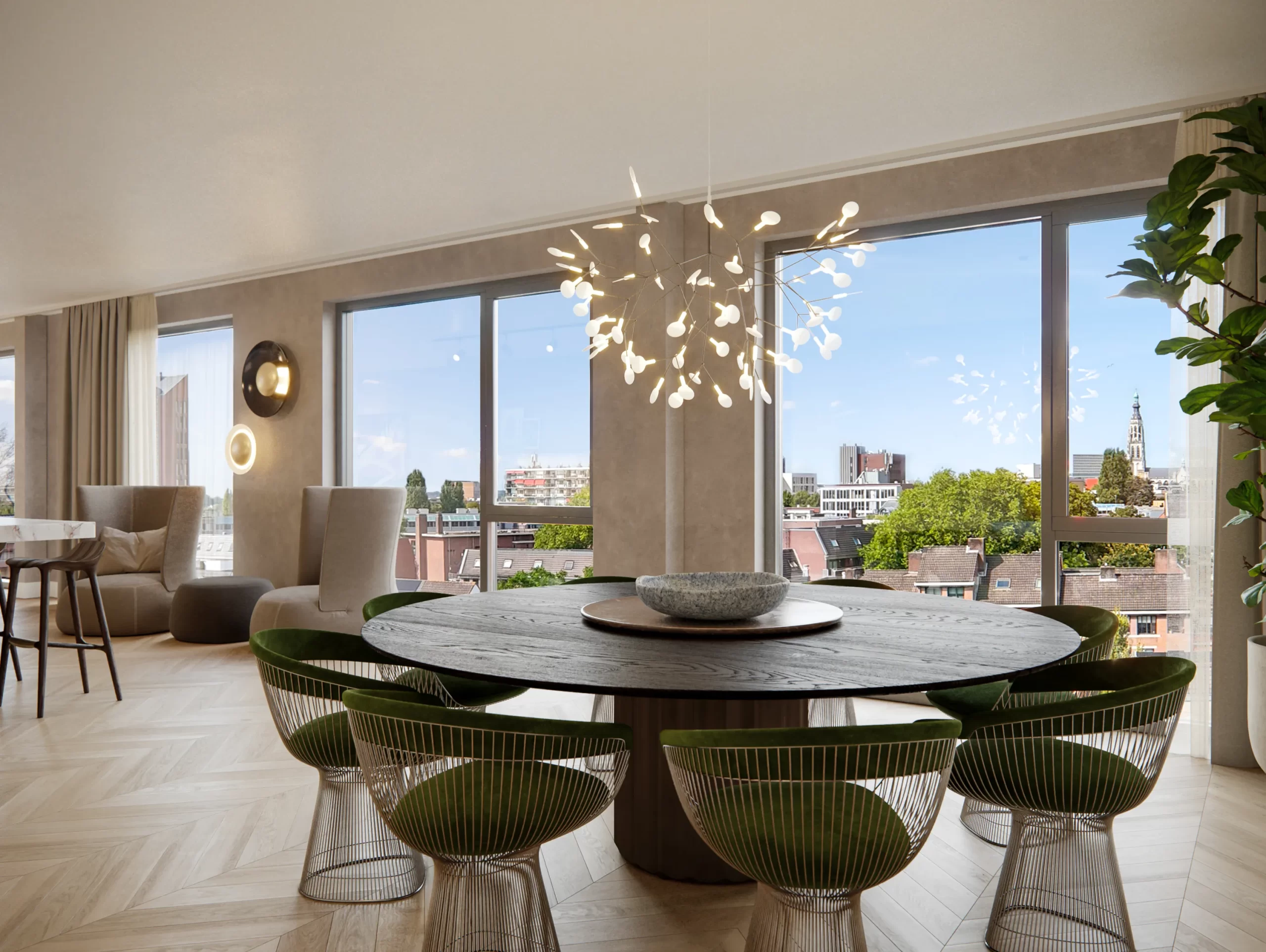 De drie luxe penthouses hebben ruime balkons op het zuiden, zuidwesten of zuidoosten, waardoor je optimaal kunt genieten van zon en een uitzonderlijk uitzicht over Breda. De penthouses hebben een exclusieve ligging op de hoogste verdieping. Voor deze bijzondere woningen is een eigen opgang gecreëerd voor extra privacy. Op het terrein is ook een privé parkeerplaats inbegrepen met de aanvullende mogelijkheid tot een tweede.